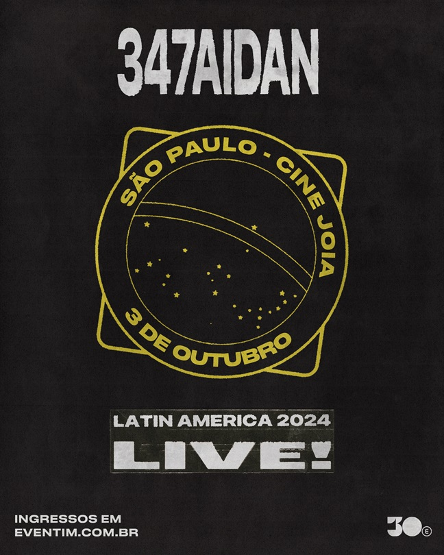 347aidan ganhou notoriedade em 2021 com a música “Dancing in My Room”, que viralizou nas redes sociais e chegou a mais de 300 milhões de ouvintes no Spotify. Após passar por palcos importantes da Europa e fazer a abertura da turnê de Oliver Tree nos Estados Unidos, Aidan desembarca no Brasil para um show único em São Paulo. O cantor tem sucessos como “One Of Those Days”, uma colaboração com Lil Yachty e Zack Bia que foi parar na trilha sonora do EA SPORTS FC™ 24 (sucessor dos jogos de videogame FIFA); “Up&Down”, com o duo vencedor do Grammy, The Chainsmokers, e o mais recente lançamento “Cover Man”, inspirado no clássico do cinema Brilho Eterno de Uma Mente Sem Lembranças (2004). A apresentação no Brasil, realizada pela 30e, acontece no dia 3 de outubro, no Cine Joia, em São Paulo. A venda de ingressos começa em 11 de julho, às 11h, no site da Eventim