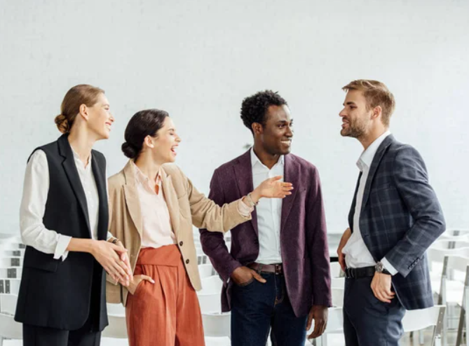 Ao abordar um desconhecido, é importante cumprimentar de forma cuidadosa e apresentar-se de forma articulada. Falar o nome de maneira clara, sorrir e manter contato visual cria um ambiente leve e harmonioso. Cumprimentar conhecidos com entusiasmo, utilizando seus nomes, fortalece laços positivos. Por exemplo: “Oi, João!! Que alegria rever você!