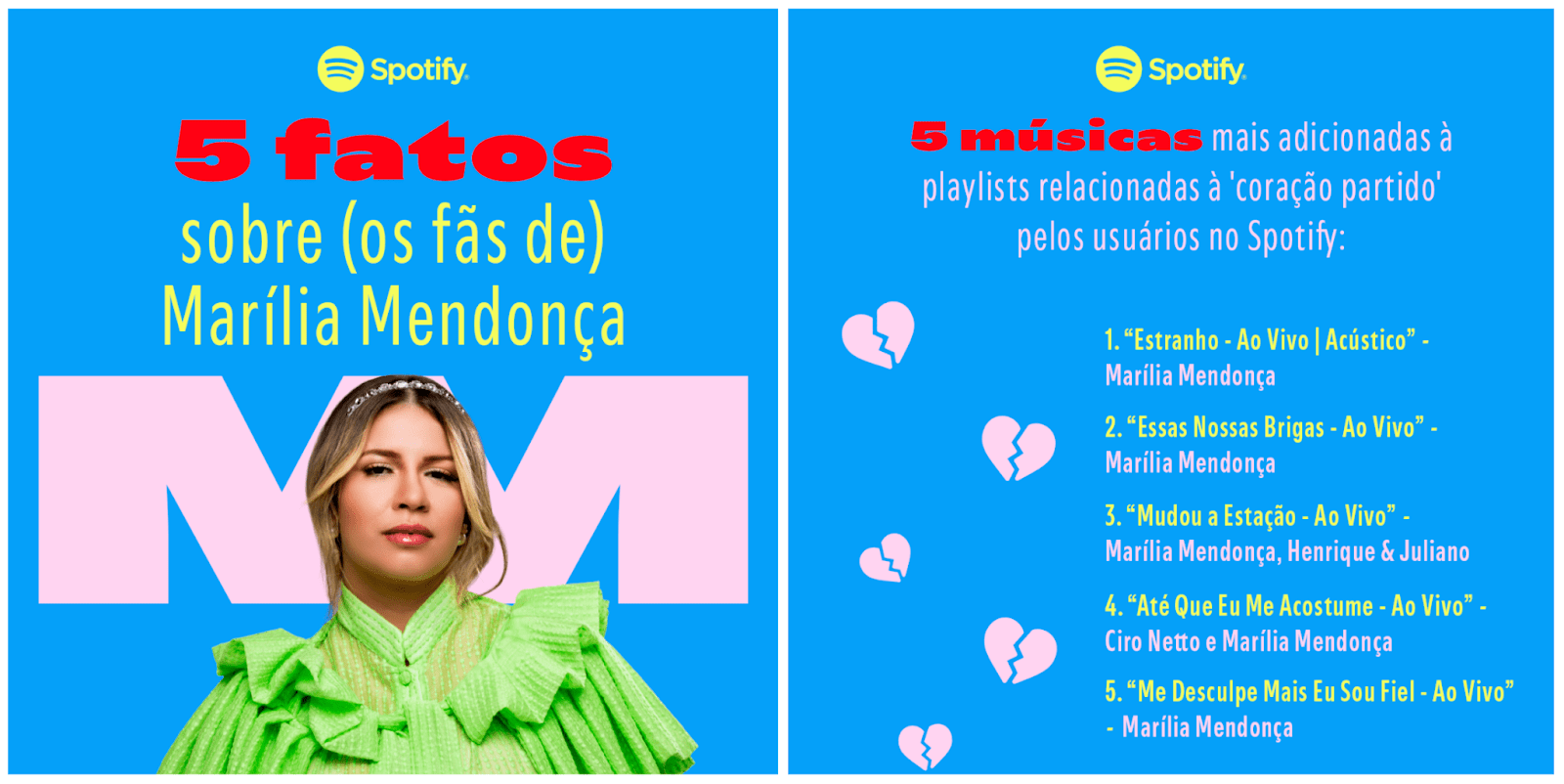 - Marília Mendonça esteve presente mais de 1.900 vezes no top 10 da playlist Top 50 Brasil
