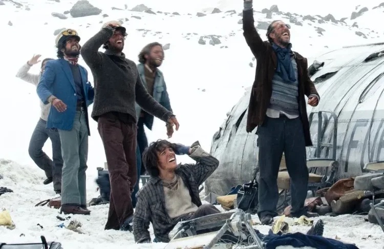 Outro ponto positivo e que revela uma bem-vinda contenção na abordagem desse episódio tão espetacular e dramático é a fuga do sensacionalismo. J. A. Bayona poderia aproveitar certos momentos para chocar a plateia, especialmente a partir do primeiro cadáver destrinchado longe da vista dos colegas a fim de fornecer um pouco de proteína aos sobreviventes. Aliás, a direção de fotografia assinada por Pedro Luque é feita de planos mais fechados do que abertos, uma escolha criativa fundamental para representar a sensação espacial de claustrofobia. Diante de um cenário interno minúsculo (a metade do avião destruído) e com o exterior caracterizado por uma brancura que parece infinita e sem muita variação, J. A. Bayona consegue segurar a tensão por cerca de 140 minutos, lidando bem com suas restrições. Já as repetições contribuem para a representação da rotina entediante, à ideia do dia a dia feito de redução de danos, à rápida assimilação de mortes que acontecem aos montes e às tentativas pouco heróicas/redentoras de improvável salvação. O resultado é fruto de um bom equilíbrio entre essa proposta realista sem protagonismos excessivos, ênfase em antagonismos e afins (ainda que haja um verniz para evitar a crueza dos dias insuportáveis), e a valorização da capacidade que uns tiveram de se reorganizar física e mentalmente para sobreviver, mas sem enxergar mortos como menos dignos de louvor.