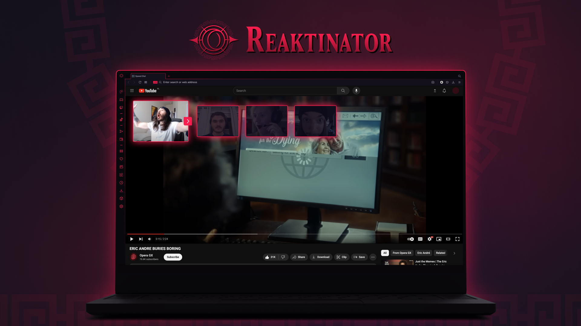 Já ficou sem palavras, chocado ou simplesmente confuso com um vídeo do YouTube, sem saber como reagir? Nós também. O Opera GX, o navegador para gamers, tem a solução. Através do nosso recurso mais recente, o “Reaktinator”, os usuários agora podem adicionar seus próprios vídeos para criar diferentes variedades de reação enquanto assistem ao YouTube.