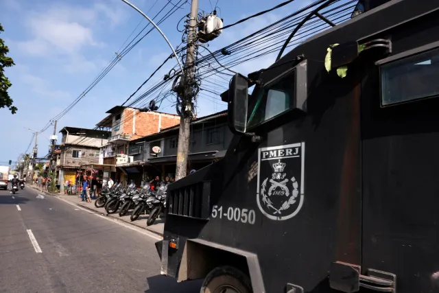 “Se houver covardia, vai ser três vezes pior! Vou meter o [Batalhão de] Choque, o Bope e o Bac”, vocifera um homem branco ao microfone sem fio, trajando um colete balístico sobre sua blusa polo alva, enquanto caminha ao lado de um caveirão da Polícia Militar do Rio de Janeiro (PMERJ).