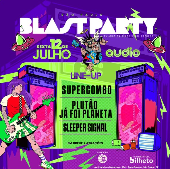 Por isso, no dia 12 de julho prepare-se para uma noite inesquecível de música e energia na Blast Party, festival de pop rock que vai agitar a Áudio Club, em São Paulo! O evento, que promete ser um verdadeiro sucesso, reúne em seu line-up três das bandas mais queridas do momento: Supercombo, Sleeper Signal e Plutão Já Foi Planeta.