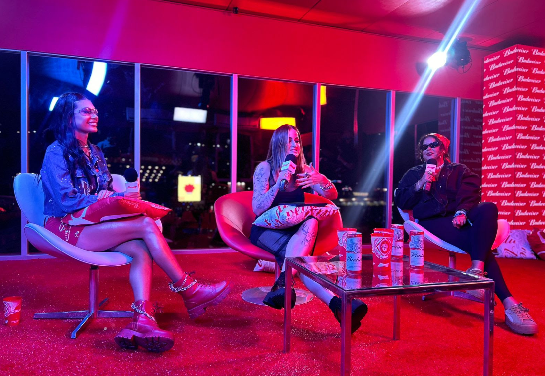 Um bate-papo descontraído, com muitas risadas, animou o estande de Budweiser – a cerveja oficial do Lollapalooza Brasil 2024 – nesta sexta-feira (22), primeira noite do festival. No Bud Studio, espaço que reúne artistas e influenciadores de dentro e de fora do festival, a funkeira Pocah, a DJ Jude Paulla e a apresentadora Mari Palma, participaram da primeira BudTalk no Lolla 2024 e lembraram momentos emblemáticos em que deixaram de ocupar o papel de ídolos para serem “apenas” fãs, e acabaram tendo atitudes inesperadas diante das pessoas famosas que admiravam.