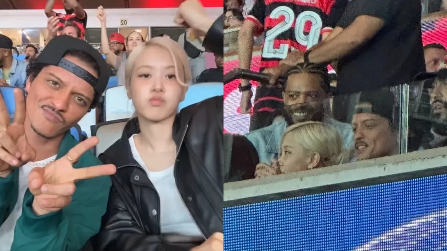 Rosé aproveitou a experiência no Brasil para gravar um vídeo com Bruno. Os dois fizeram dancinhas e vibraram junto à torcida enquanto acompanhavam a partida.