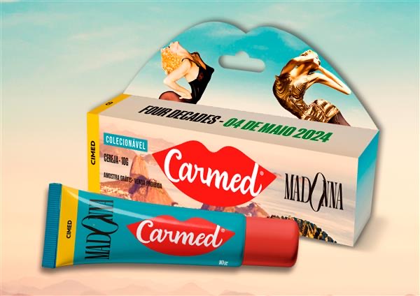 A marca Carmed, líder de vendas em hidratante labial no país, anuncia o lançamento de uma edição única e colecionável de Carmed Madonna, produto desenvolvido especialmente para o maior show dos 40 anos de carreira do principal fenômeno transgeracional da música pop do mundo, nas areias da Praia de Copacabana, no próximo dia 4 de maio. O Carmed Madonna terá aroma de cereja e embalagem temática inspirada no estilo pop e vanguardista da cantora.