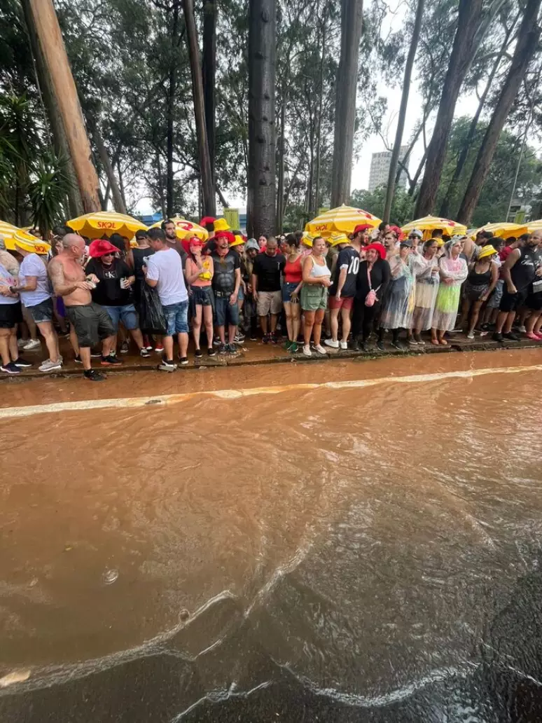 Imagens impressionantes que circulam nas redes sociais mostram a transformação das vias próximas ao parque. O volume de água foi tão intenso e repentino que formou correntezas, dificultando a locomoção do público. Segundo relatos apurados pelo portal Terra, a drenagem local não suportou a carga d’água, criando o cenário caótico que muitos foliões apelidaram de “rio do Ibirapuera”.