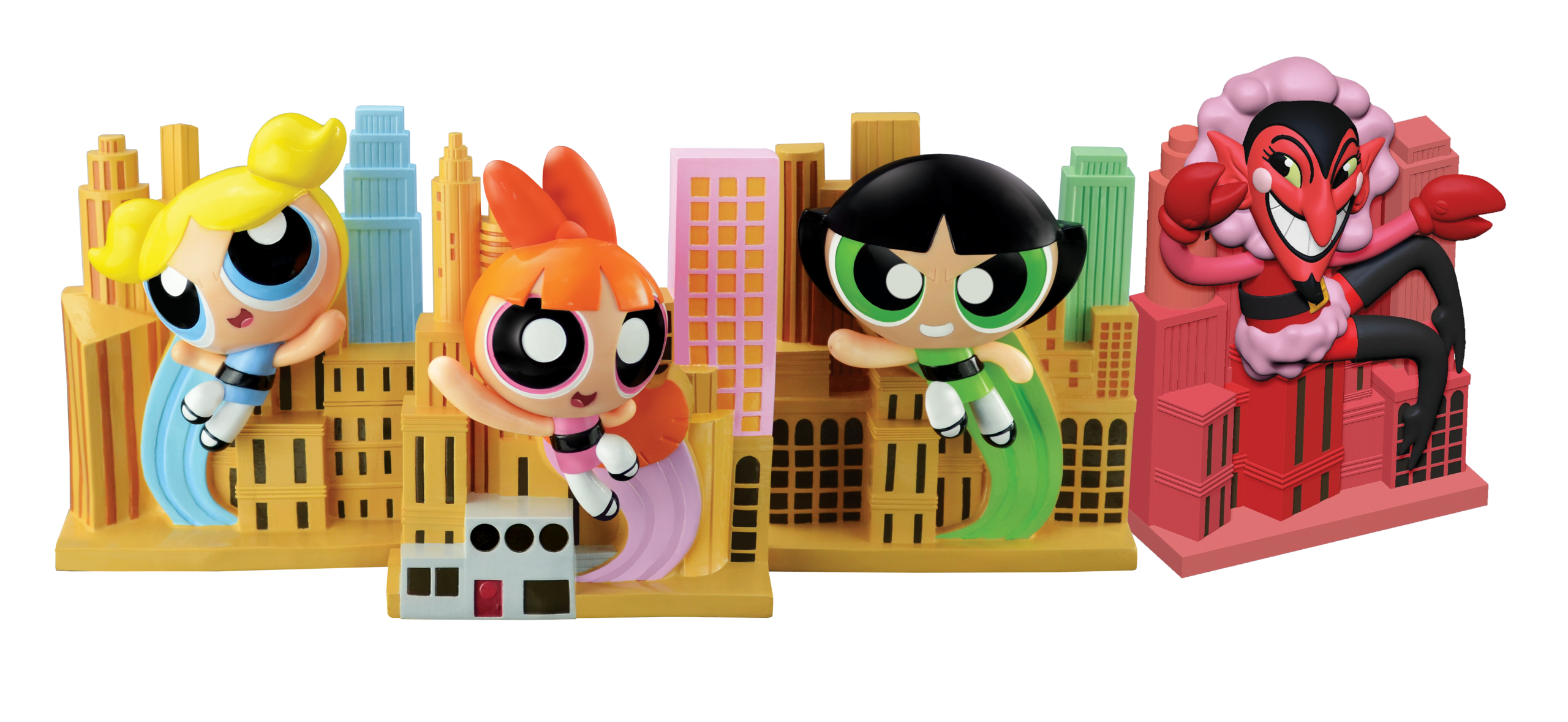O trio de heroínas chega para salvar o dia mais uma vez com os colecionáveis da Florzinha, Lindinha e Docinho, juntas para enfrentar o terrível Ele. Cada novo boneco traz consigo um diorama da icônica cidade de Townsville, adaptada com as cores dos personagens.