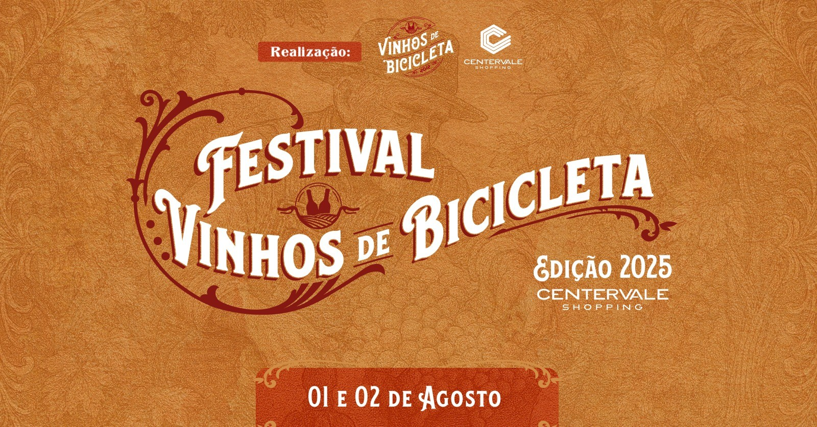 O CenterVale, referência em entretenimento e experiências marcantes na região, se prepara para oferecer dois dias intensos de descobertas, sabores e brindes inesquecíveis. Nos dias 01 e 02 de agosto, o shopping será palco do aguardado Festival de Vinhos de Bicicleta. A Edição 2025 destaca mais de 60 expositores e mais de 400 rótulos, nacionais e internacionais, em evento exclusivo no Vale do Paraíba.