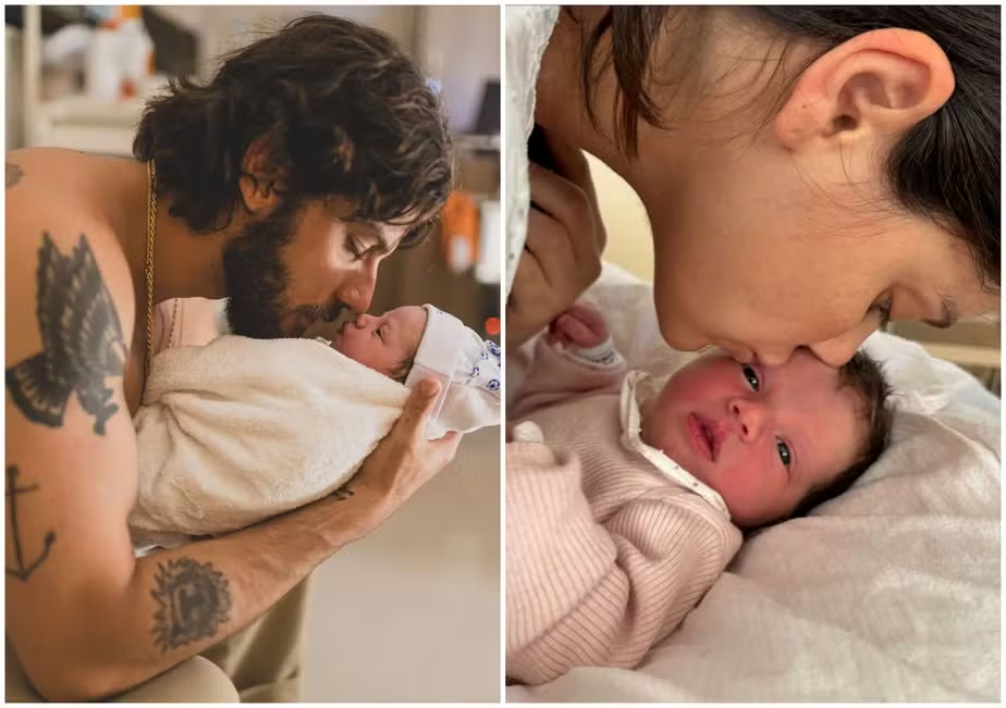 Laura Neiva, que deu à luz na sexta-feira 8, também divulgou uma imagem da filha em suas redes sociais. Até o nascimento, o casal havia mantido o gênero do bebê em segredo.