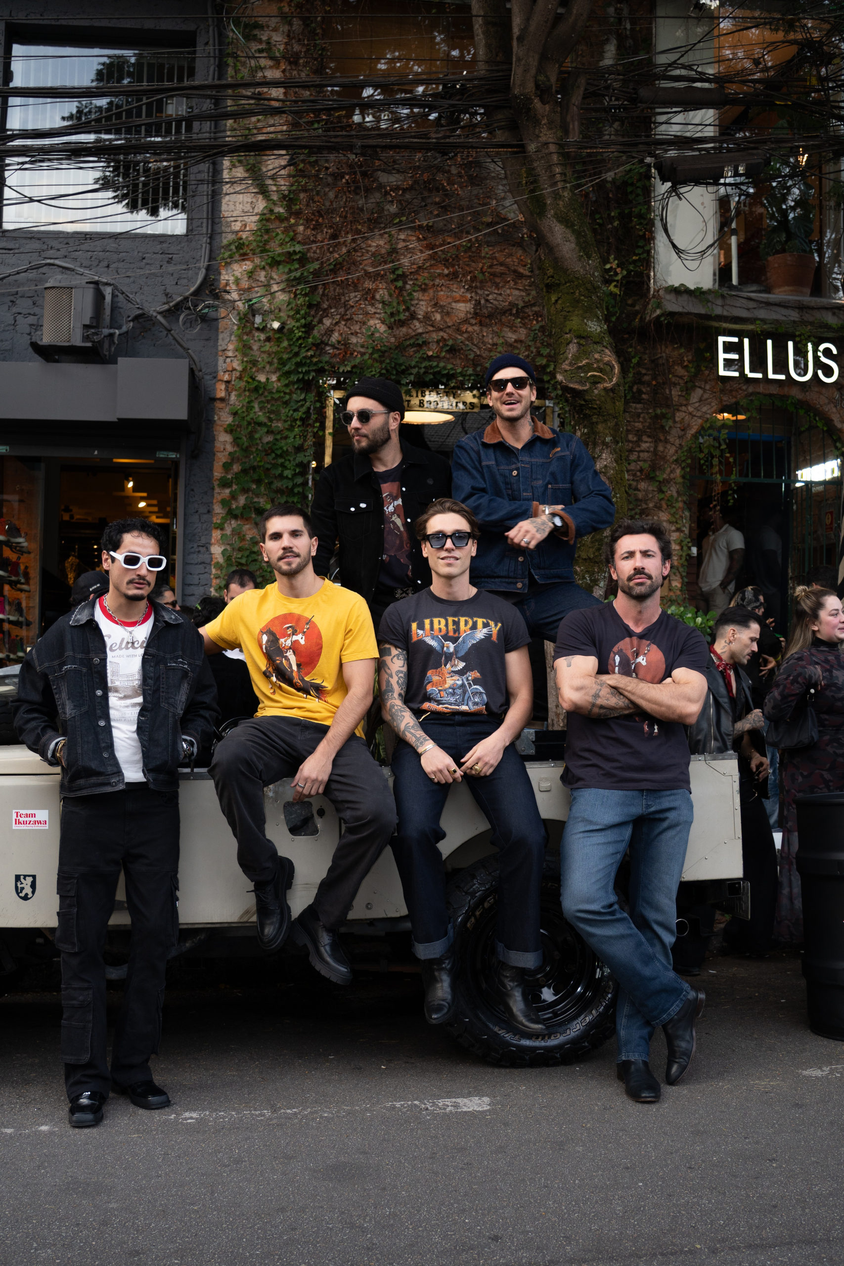 A Ellus e a Liberty Art Brothers brindaram sua primeira collab em um evento exclusivo neste sábado (5), em Pinheiros, na capital paulista. Com foco na estética vintage das décadas de 1950 e 1970, a coleção inédita de moda masculina une os estilos western e motorcycle de forma atemporal. O lifestyle urbano e a pegada sofisticada das marcas estiveram presentes no conceito da comemoração, que contou com personalidades como Mateus Verdelho, David Jensen, entre outros.