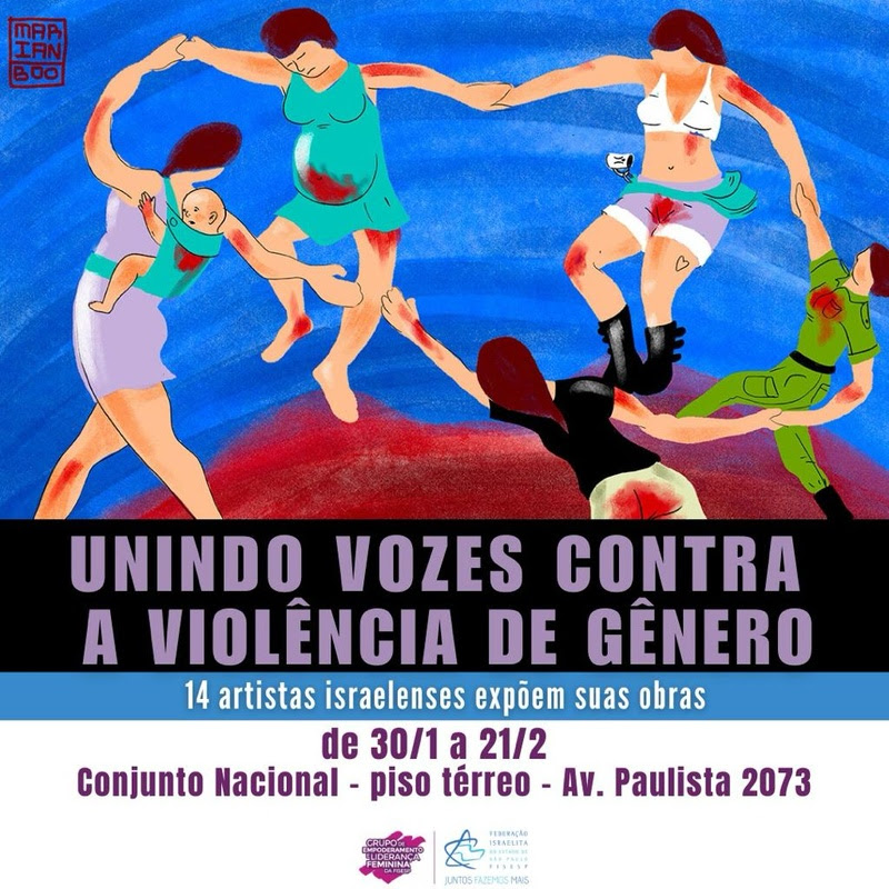 Após ser lançada com grande impacto no Ministério das Relações Exteriores de Israel em um evento com a participação de 100 diplomatas estrangeiros, a Federação Israelita do Estado de São Paulo (Fisesp) por meio do Grupo de Empoderamento e Liderança Feminina (ELF), traz ao Brasil a Exposição “Unindo Vozes Contra a Violência de Gênero” que reúne o trabalho de 14 artistas israelenses e ficará em cartaz de 30 de janeiro a 21 de fevereiro no Conjunto Nacional, em São Paulo.