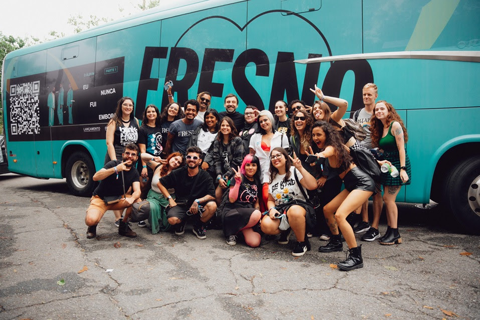 A Fresno coleciona momentos marcantes no Lollapalooza Brasil. Se em 2022 a banda fez um dos shows mais elogiados do evento, nesta sexta, 22 de março, o trio chamou atenção fora dos palcos com uma ação inédita: uma carona para os fãs. Prestes a lançar o novo trabalho, a Fresno usou o tema do próximo disco, Eu Nunca Fui Embora, para envelopar um ônibus e levar o público até o Autódromo de Interlagos, em São Paulo. Os fãs tiveram a viagem embalada pelas faixas inéditas que compõem a primeira parte do álbum, que será disponibilizado no dia 5 de abril