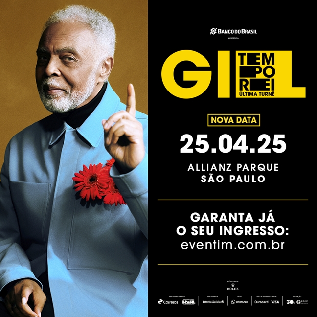 Depois de lotar TRÊS datas no Allianz Parque e vender nada menos que 150 MIL ingressos em São Paulo, o ícone da música brasileira Gilberto Gil não para de surpreender! Agora, ele acaba de confirmar um quarto show da sua turnê de despedida, TEMPO REI, na capital paulista. Anota aí: 25 de abril de 2025. Sem dúvida, é a sua chance de ver essa lenda viva ao vivo antes do adeus definitivo aos palcos.