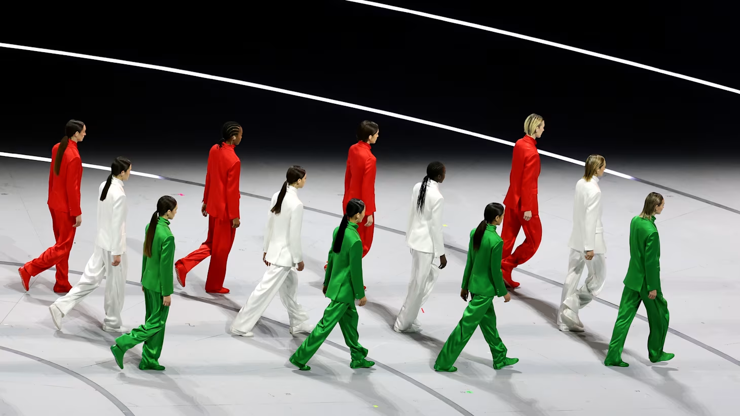 Durante a cerimônia no Estádio San Siro, o momento cultural mais marcante foi dedicado ao estilista. Modelos desfilaram criações exclusivas que formaram um mosaico gigante da bandeira italiana, celebrando a elegância que Armani exportou para o mundo durante décadas.