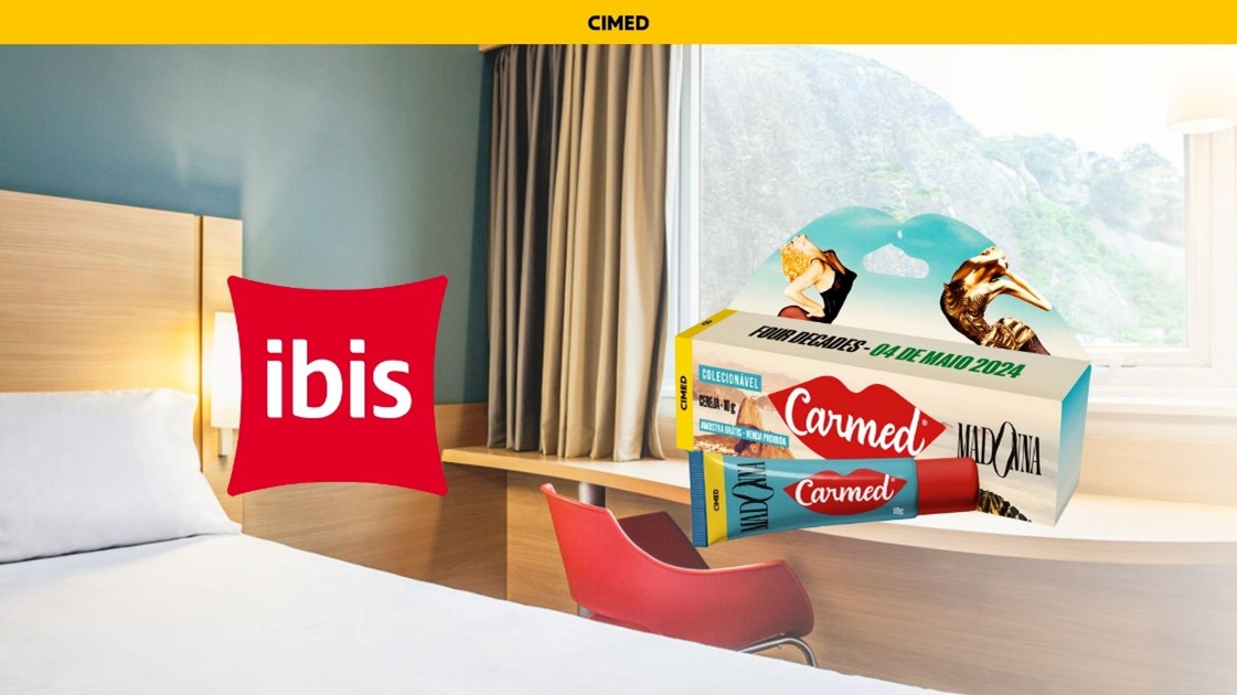 A marca de hotéis ibis, do Grupo Accor, em parceria com o hidratante labial Carmed, da farmacêutica Cimed, vai distribuir para hóspedes a edição limitada do Carmed Madonna, produto criado exclusivamente para celebrar a vinda da cantora pop ao Brasil com sua turnê nesta semana. Para ganhar o Carmed Madonna, no dia 4 de maio, os fãs e hóspedes precisarão participar de uma dinâmica divertida, comprovando o quanto são realmente fãs da artista, em três hotéis da capital: ibis Copacabana Posto 2, ibis Copacabana Posto 5 e ibis Botafogo. Para acompanhar toda a cobertura das ativações, basta seguir o perfil @ibis.br nas redes sociais.