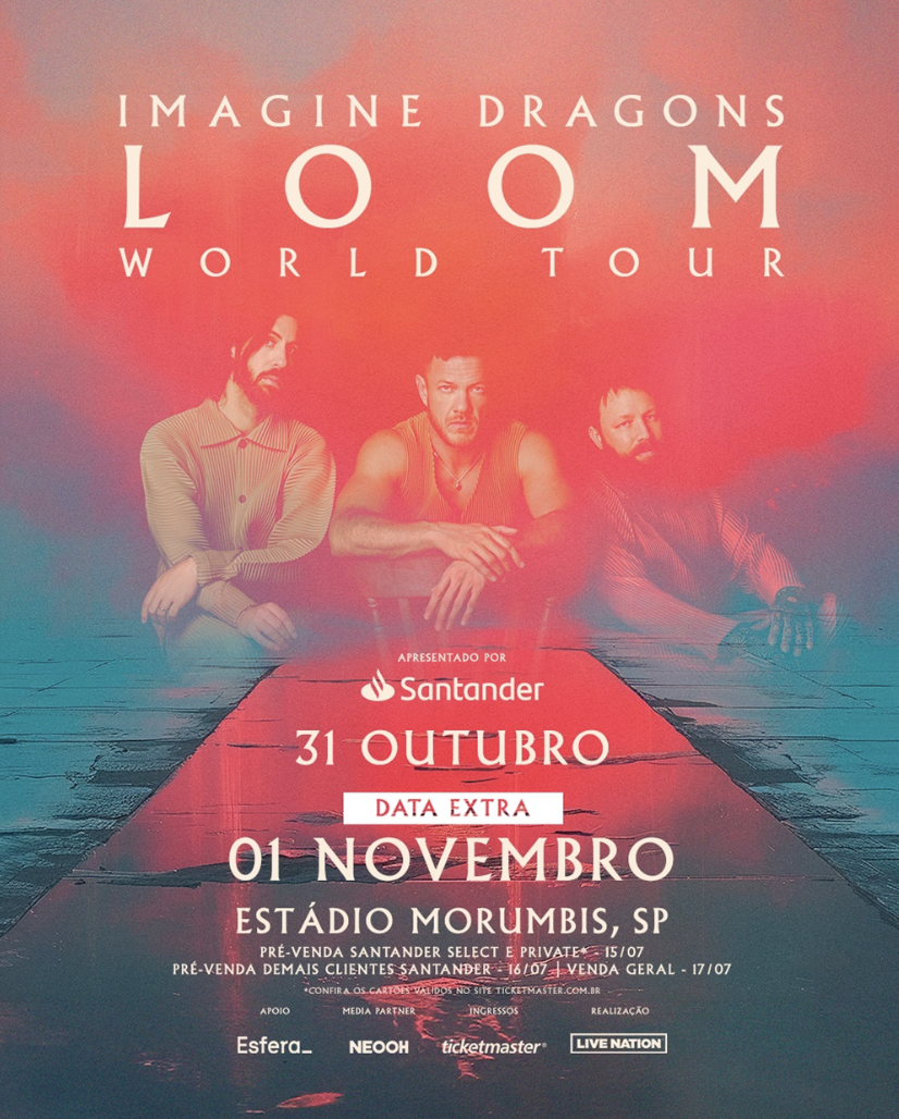 Devido a alta demanda, a banda multiplatina e vencedora do Grammy, Imagine Dragons, anuncia data extra no Brasil no dia 01 de novembro,no Estádio MorumBIS, em São Paulo.