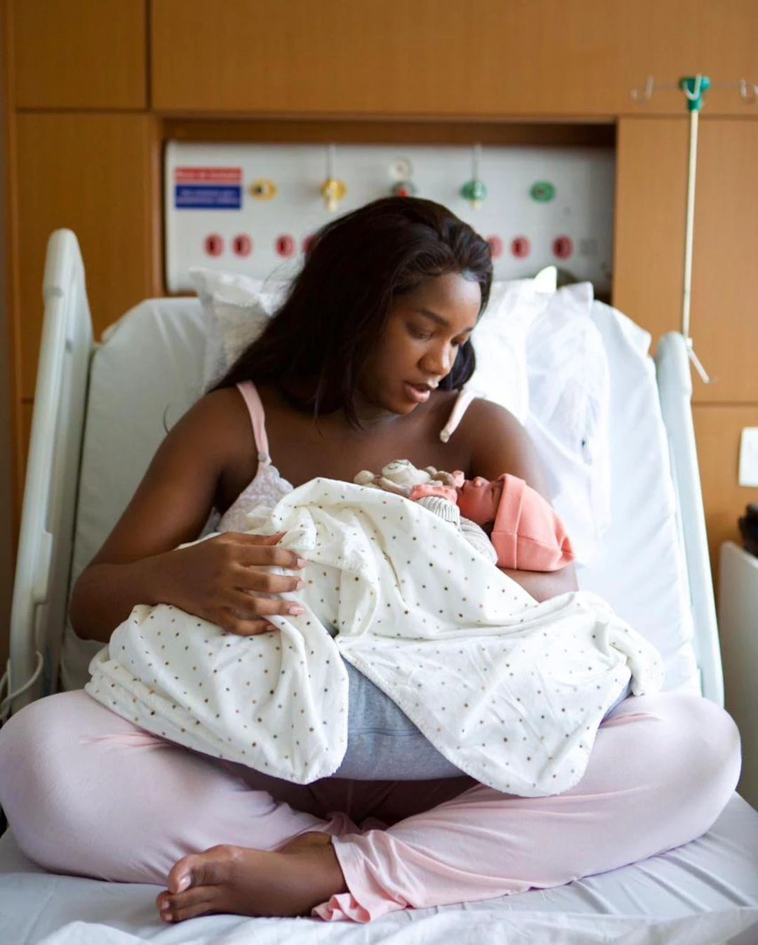 As imagens foram publicadas quase um mês depois do nascimento de Nala, no último dia 13 de outubro. O rosto da pequena fica visível na primeira imagem, onde Iza está sentada na cama do hospital e segura a filha nos braços.