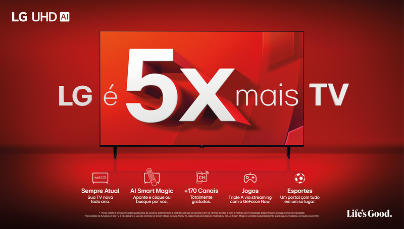 As linhas de TV LG UHD AI e LG NanoCell AI ganharam um novo e moderno conceito: “LG é 5x mais TV”, com objetivo de realçar seus principais recursos e usos. Dessa forma, a LG reposiciona as TVs de modelos UHD AI e NanoCell AI no mercado, indo além da conectividade para proporcionar uma experiência completa para o usuário.