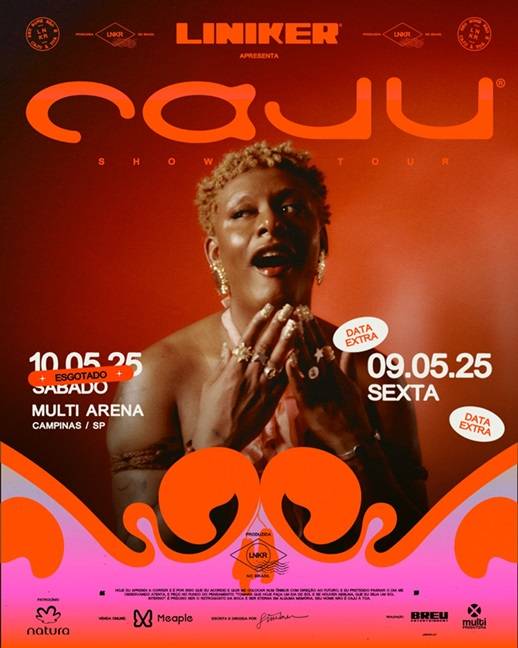 Liniker repete o feito da maioria de seus shows de CAJU e dá sold out na data de lançamento de sua apresentação em Campinas, no dia 10 de maio, em apenas 40 minutos. Agora, a artista anuncia um segundo show na Multi Arena, dia 9 de maio. A abertura de vendas está marcada para sexta-feira, 28 de março, no site da Meaple. Este show da tour de CAJU é realizado pela BREU ENTERTAINMENT e Multi.