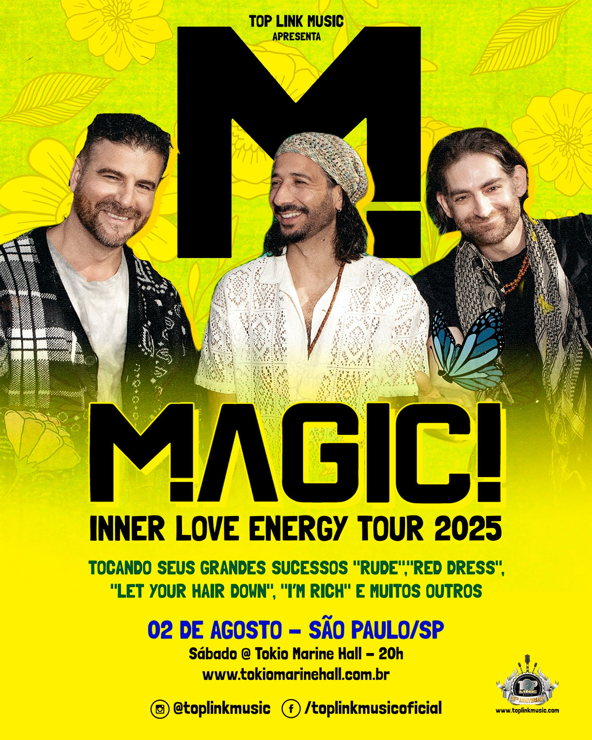 O grupo canadense Magic!, famoso por misturar reggae com pop de maneira cativante, está de volta ao Brasil com a nova Inner Love Energy Tour. Em São Paulo, a apresentação acontece no Tokio Marine Hall, no dia 02 de agosto de 2025, e promete uma noite inesquecível com sucessos como “Rude”, “I’m Rich” e “Good Feeling About You”.