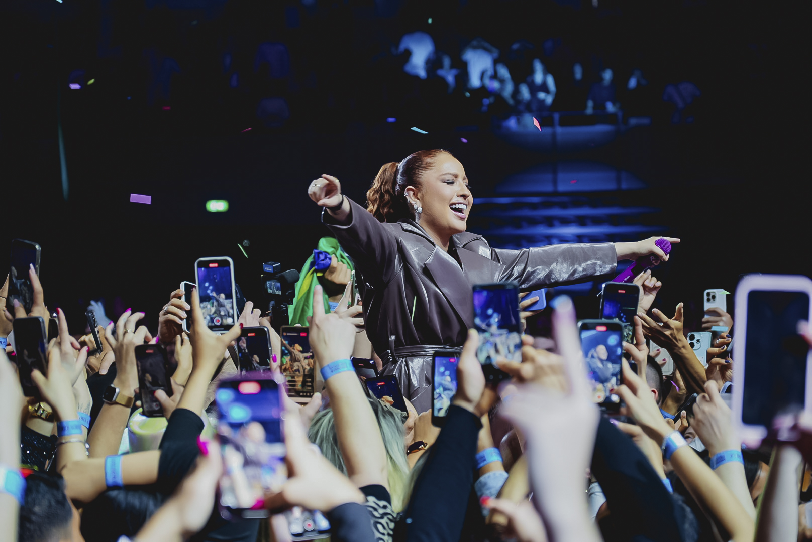 Mari Fernandez fez a estreia na Europa com o pé direito e um show inesquecível na primeira noite do FestyVybbe, nesta sexta-feira (21), no Porto. Ovacionada pelo público no Super Bock Arena, a cantora emocionou e empolgou a plateia ao longo de sua apresentação e, em um dos momentos mais marcantes da noite, foi para a galera celebrar o carinho que recebeu.