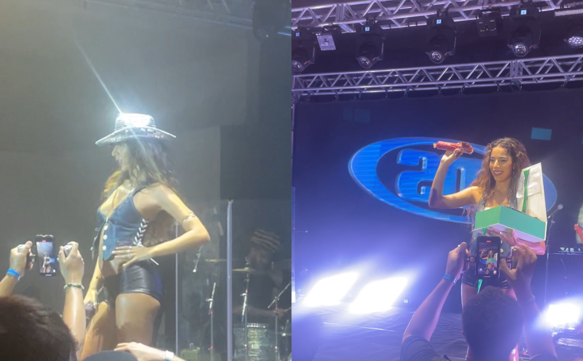 Recebida com muito carinho por seus fãs, Marina Sena saiu de Londrina carregando vários mimos entregues pelos mesmos. Desde camisas, colares, até mesmo ganhar um chapéu estilo renaissance todo personalizado e um salame embrulhado de presente.