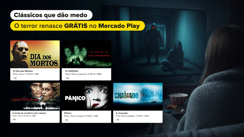 Um estudo da Blumhouse, produtora americana por trás de grandes sucessos do gênero como Atividade Paranormal e Corra!, indicou que 91% da Geração Z e 87% dos Millennials assistem a filmes de terror regularmente, especialmente durante essas temporadas festivas. Desde os que buscam sustos clássicos até os que preferem o terror psicológico ou sobrenatural, há uma história para cada gosto. E todas estão no Mercado Play, para assistir de graça em qualquer dispositivo.