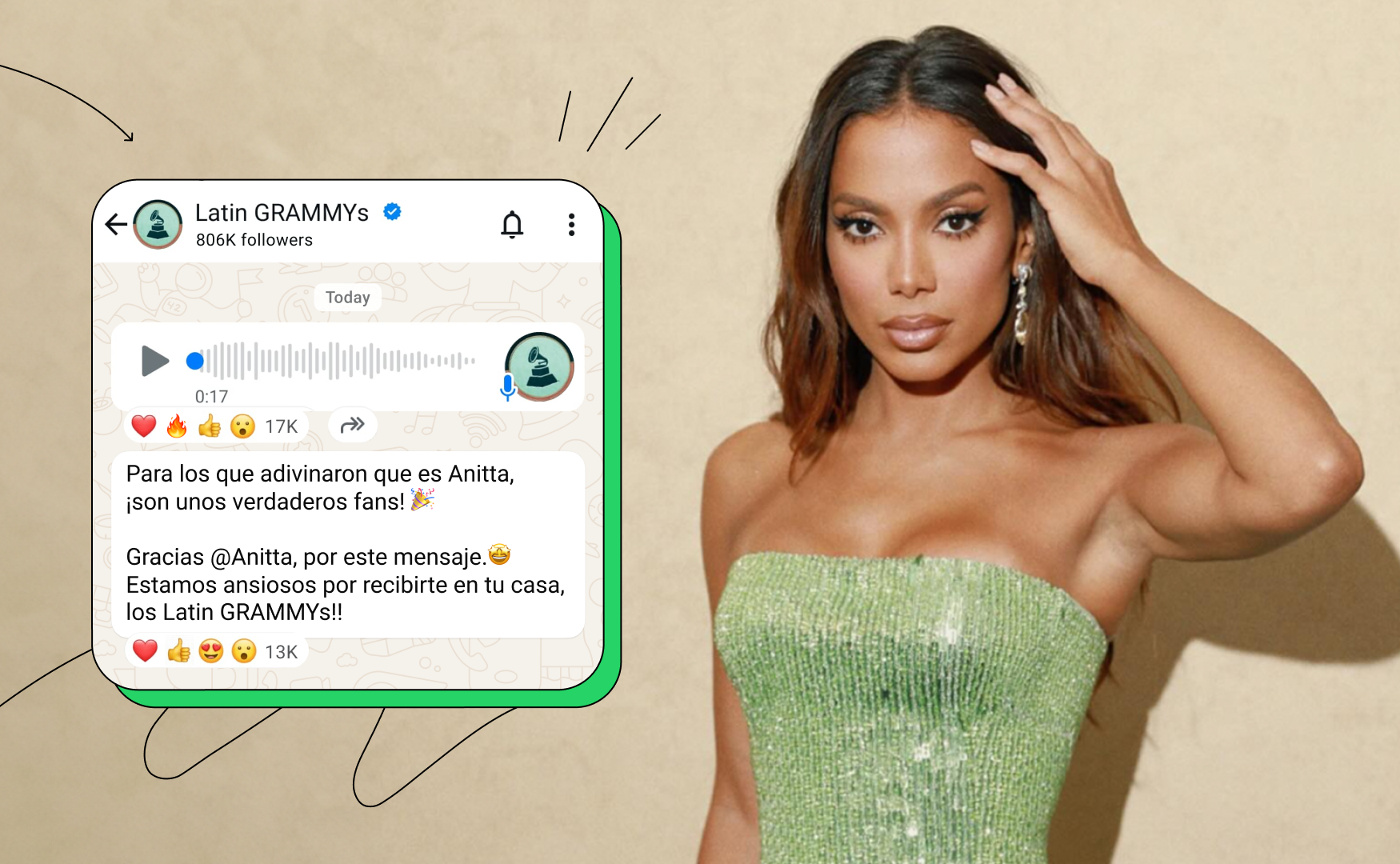 Academia Latina da Gravação revelou, exclusivamente no canal no WhatsApp do Grammy Latino, que a Anitta se apresentará durante cerimônia de premiação do Grammy Latino 2024. No anúncio, Anitta compartilha uma mensagem de voz especial confirmando sua performance no evento.