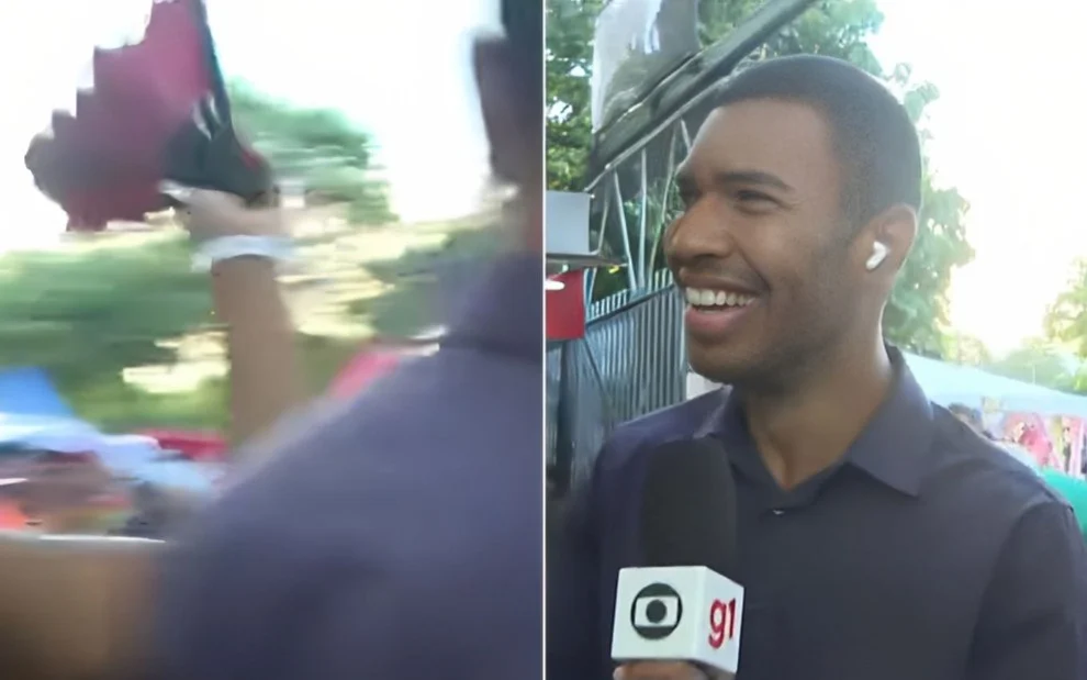 Trabalhar em transmissões ao vivo exige jogo de cintura, mas nem sempre é possível prever a empolgação do público. O repórter Cadu Safner, da TV Anhanguera (afiliada da Globo em Goiás), sentiu isso na pele durante a cobertura do pré-Carnaval em Goiânia. Em um momento que viralizou rapidamente, o jornalista acabou soltando um palavrão após ser atingido por um leque enquanto tentava entrevistar foliões.
