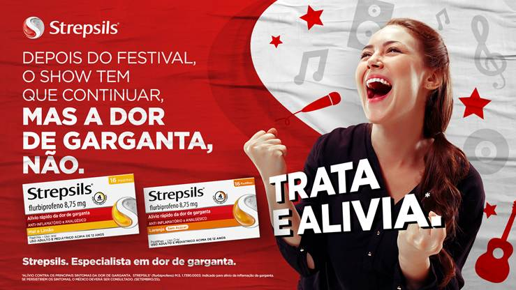 “Quando rola um grande festival é sempre assim: a gente quer cantar até não poder mais, gritar, vibrar e aproveitar cada momento. E nada pode nos impedir de curtir ao máximo, nem mesmo uma dor de garganta. Strepsils entra neste contexto de forma natural porque é uma marca que já está conectada com público jovem. No fim das contas, o show tem que continuar, mas a dor de garganta não”, comenta Diego Ferrite, Diretor de Criação da BETC HAVAS.