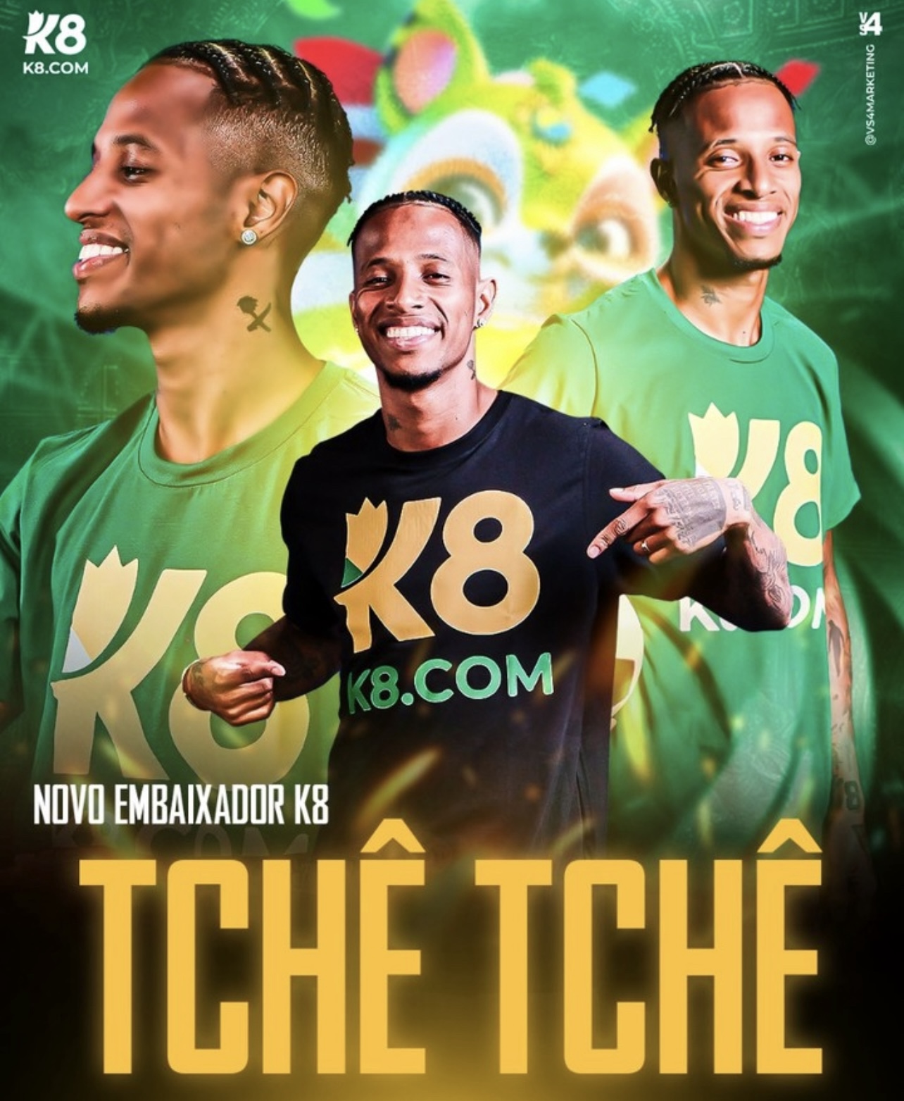 Aqui no Brasil, a K8 chegou recentemente, e é claro que teríamos um embaixador! Neste caso, temos cinco. Isso mesmo, CINCO EMBAIXADORES! Um deles é o Luiz Goulart (Luizão), ex jogador do Corinthians. Wanderlei Silva, que é um ex-lutador brasileiro de MMA aposentado, que competiu no extinto PRIDE Fighting Championships no Japão e no Ultimate Fighting Championship nos Estados Unidos, a influenciadora Wal Pimenta, Kleber Bambam, e por fim, Tchê Tchê, com sua habilidade excepcional em campo e paixão pelos jogos, TchêTchê personifica a conexão entre o mundo do futebol e dos games.