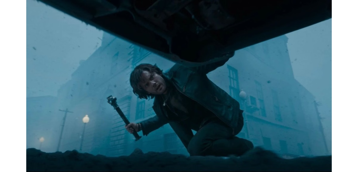 - James Sunderland (Jeremy Irvine) entrando na neblina espessa da cidade após receber uma carta de sua esposa, Mary, que supostamente já morreu.