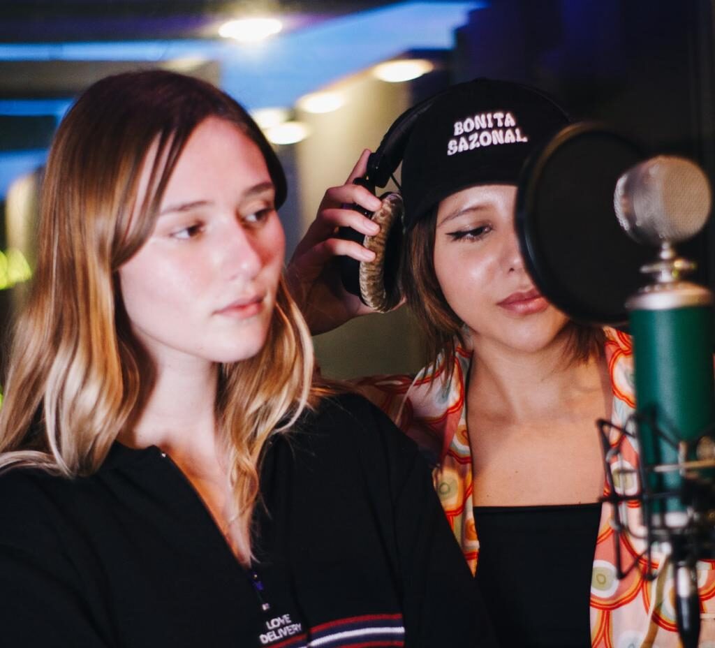 Conheci a Gab num evento GenZ onde nós duas éramos claramente as únicas que se portavam como millenials, apesar de sermos jovens também. Rimos muito naquela noite e trocamos contato. Ouvindo o som da Gab em casa, vi que ela curtia a pegada de cantar em inglês. Isso me abriu uma fresta de motivação para lançar músicas antigas minhas em inglês que estavam guardadas desde 2018. Chamei ela para compormos juntas um som do zero para acompanhar esse EP